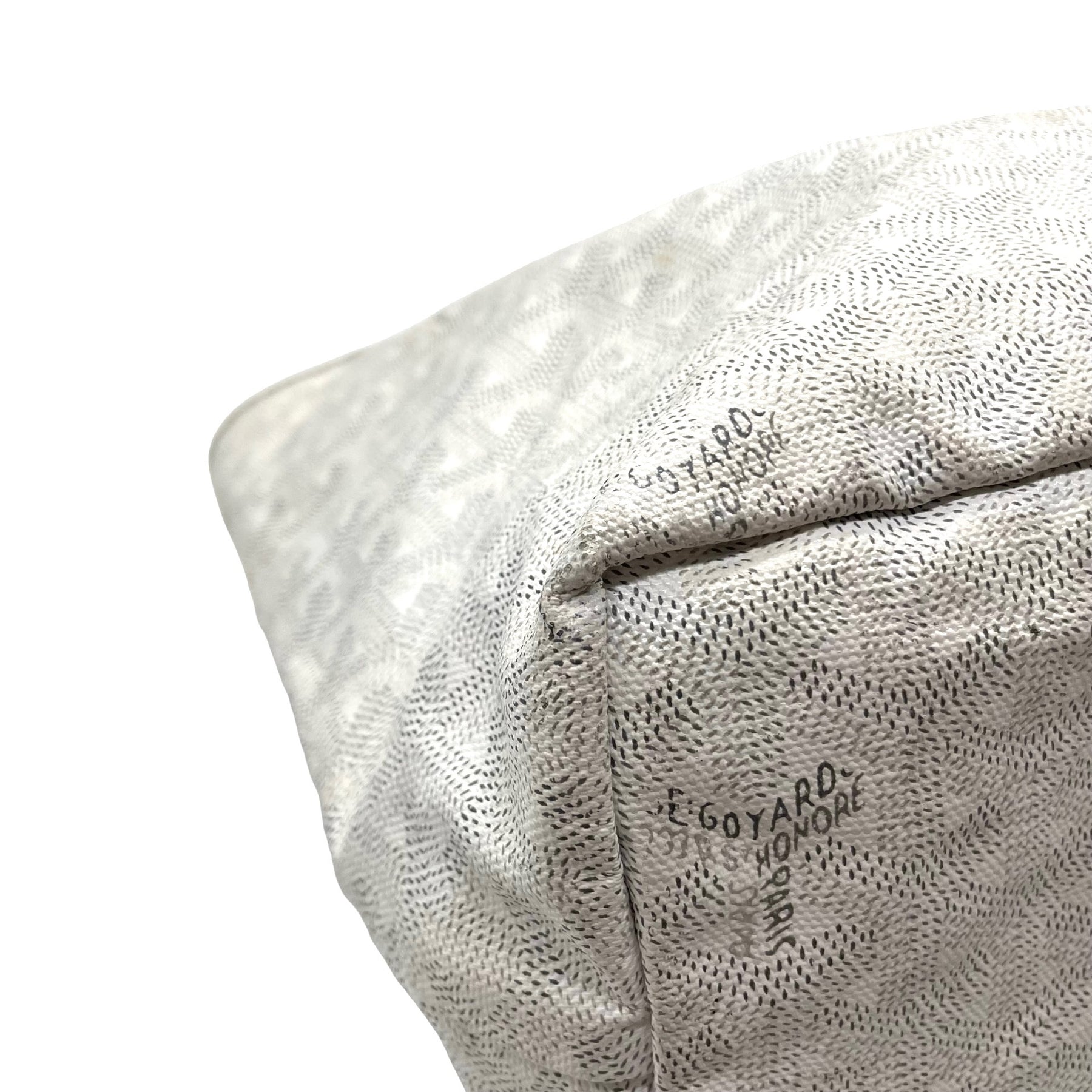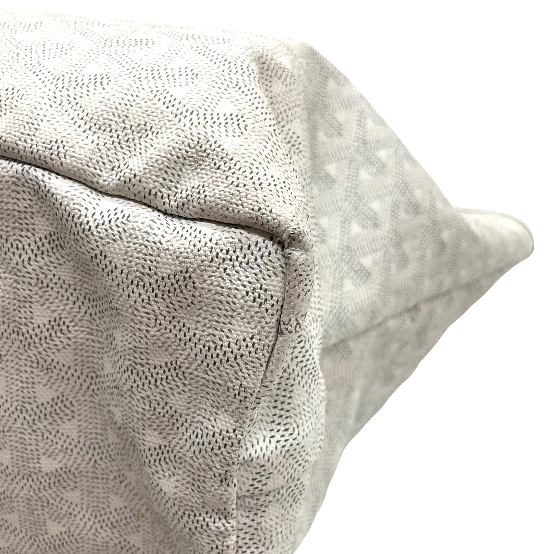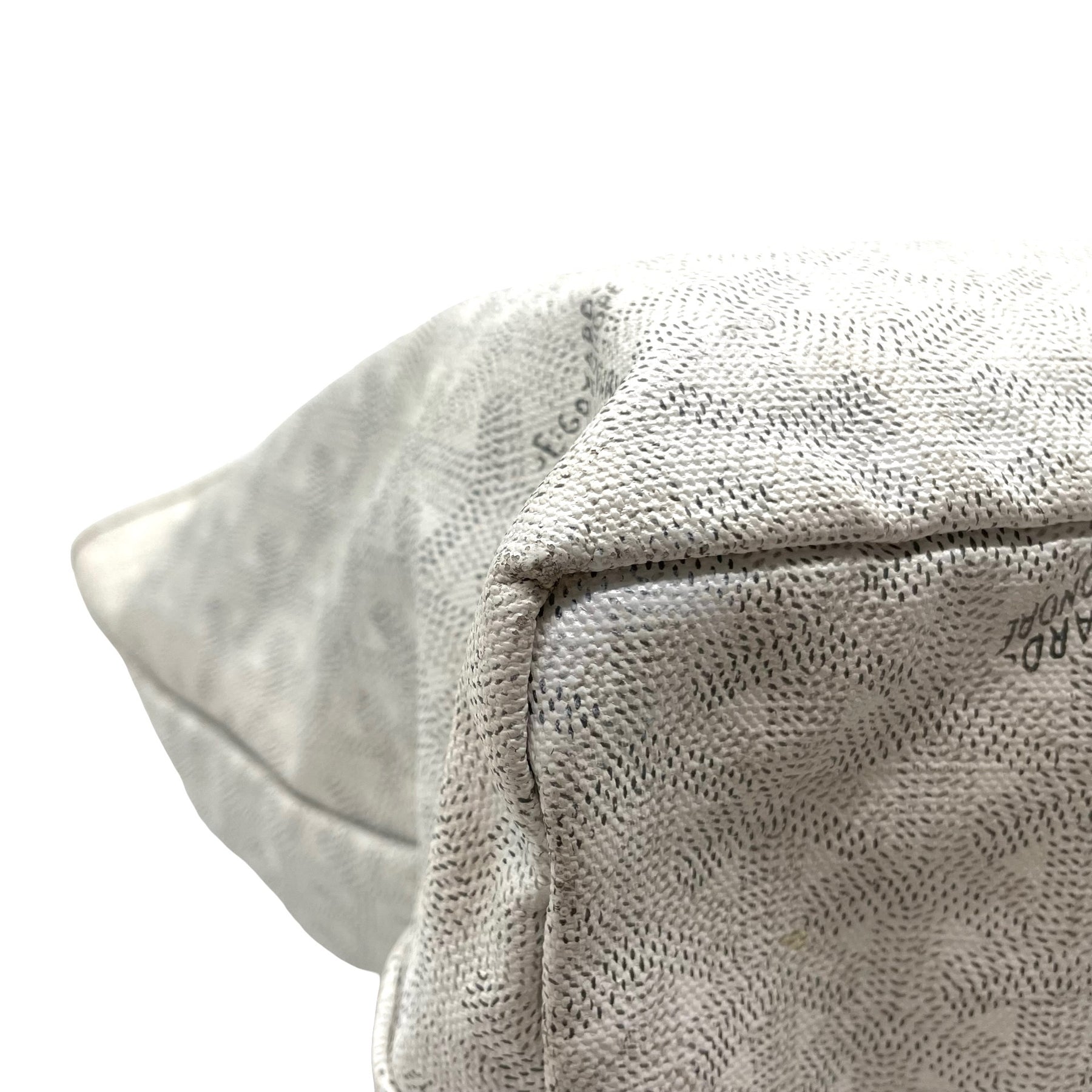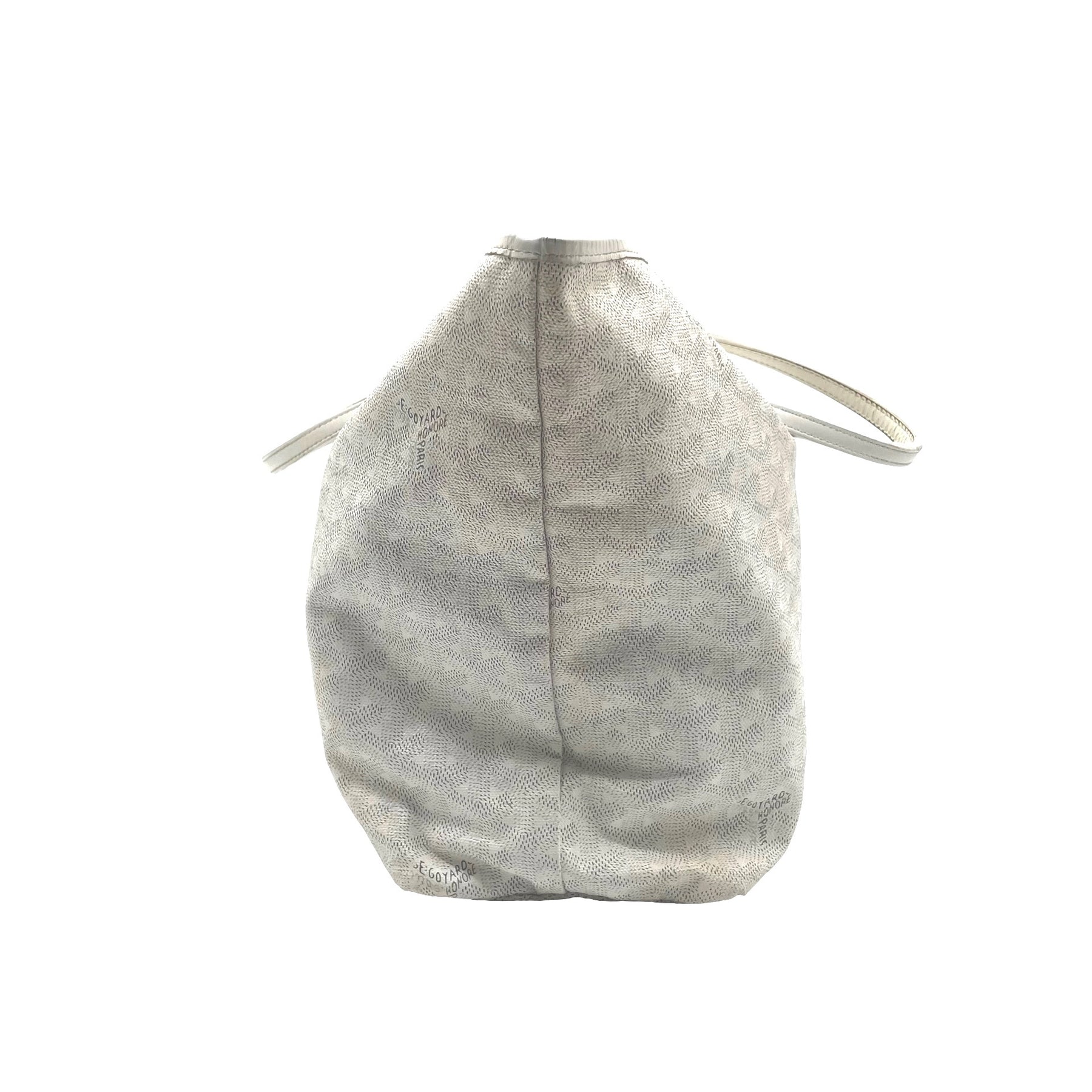 Bolsa Goyard St Louis PM, en Canvas color blanco con gris y dos asas al hombro de piel. Con desgaste en asas, orillas e interior. Con uso, en buen estado.