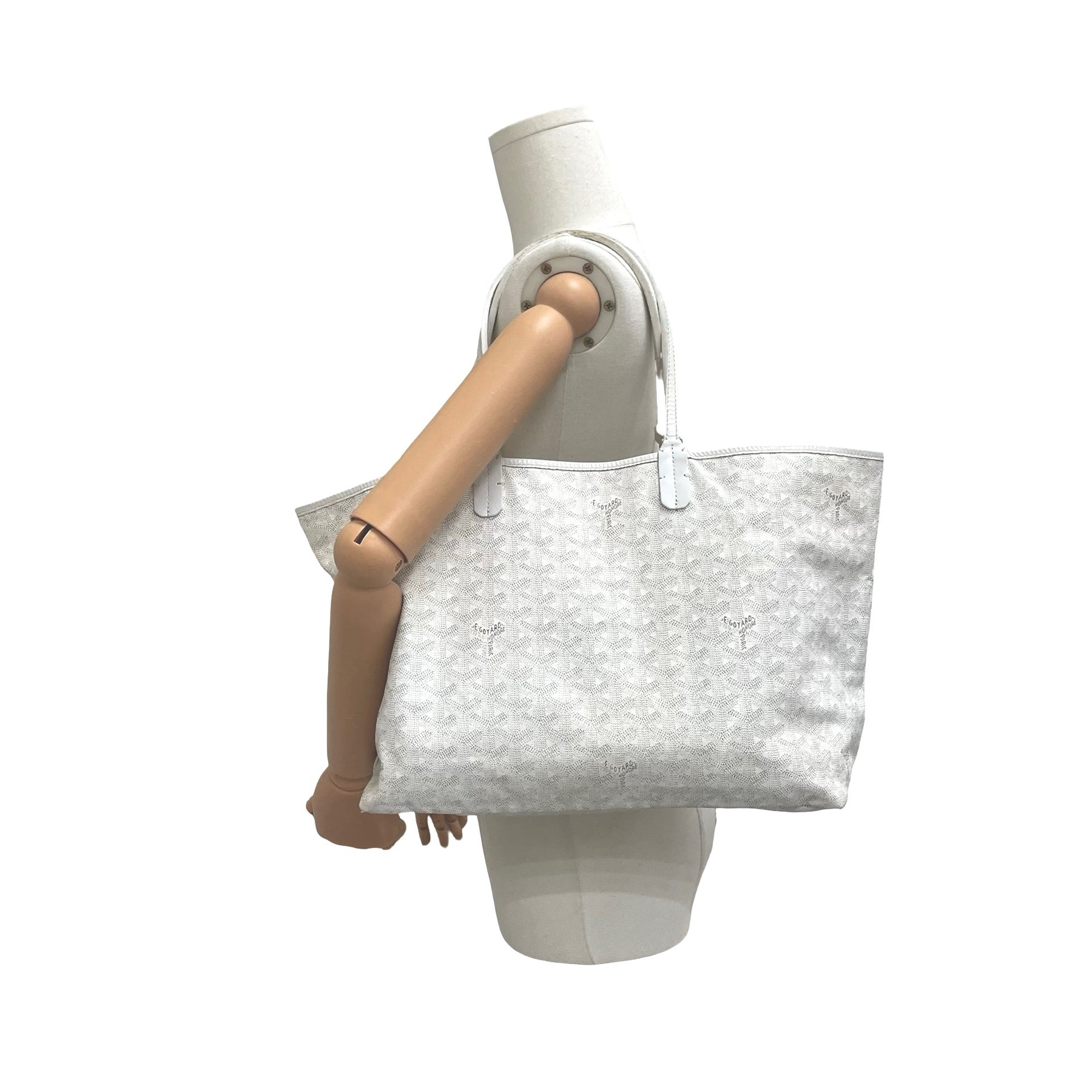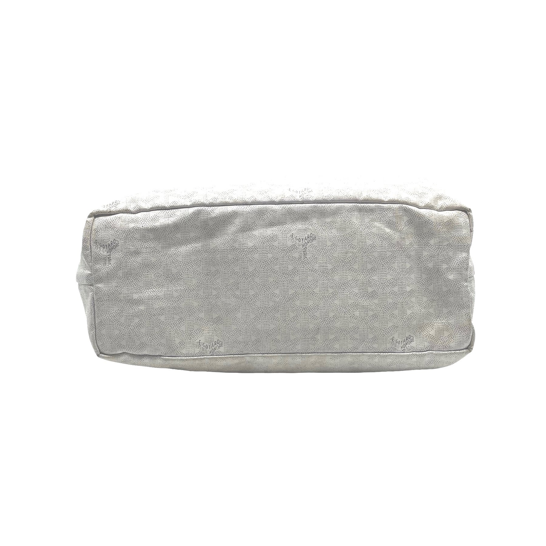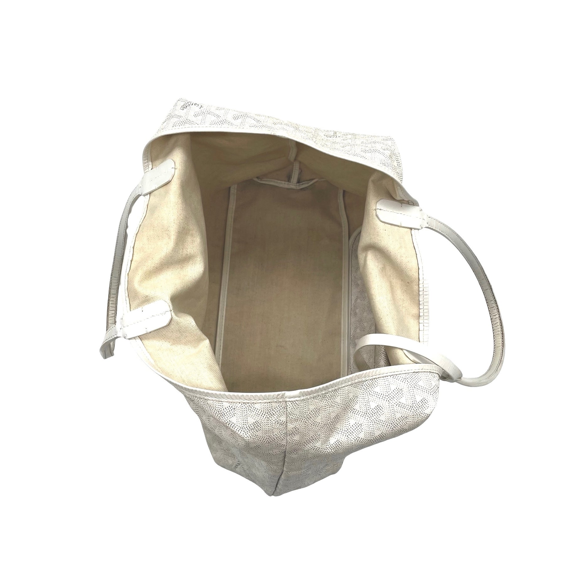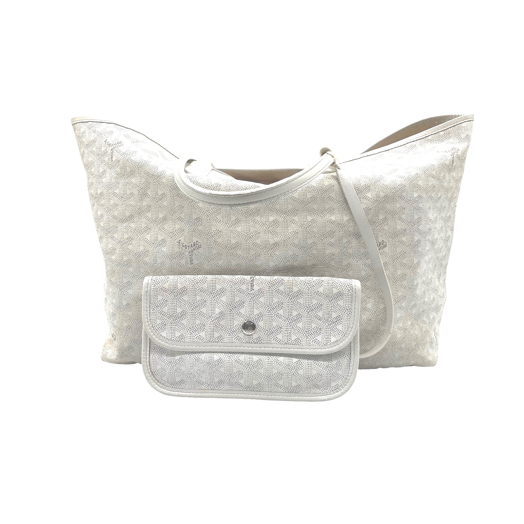 Bolsa Goyard St Louis PM, en Canvas color blanco con gris y dos asas al hombro de piel. Con desgaste en asas, orillas e interior. Con uso, en buen estado.