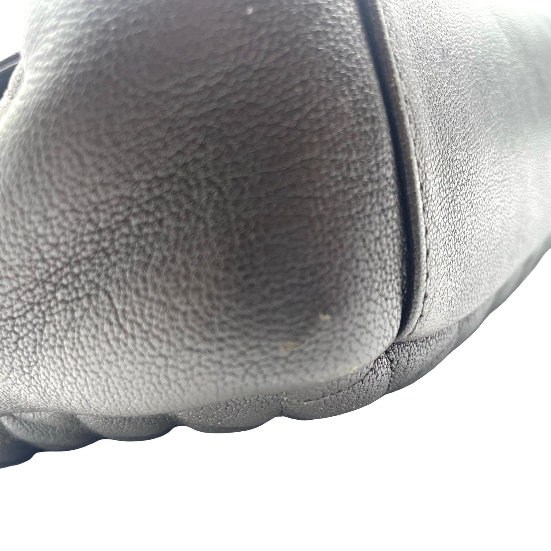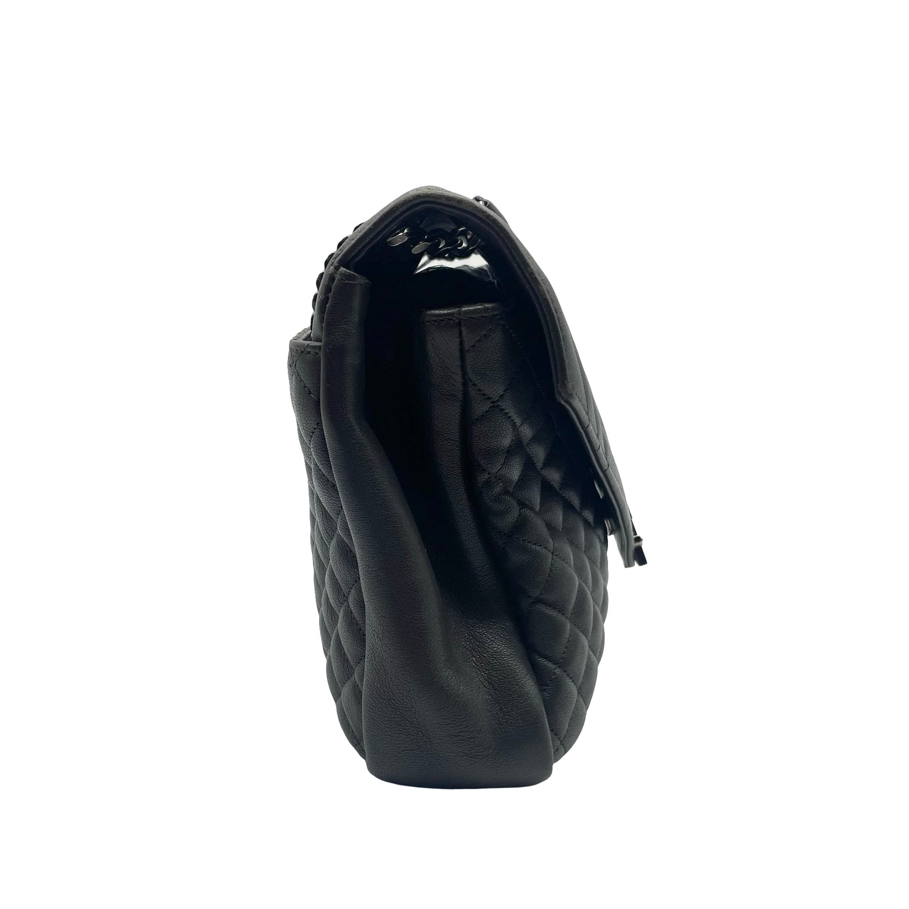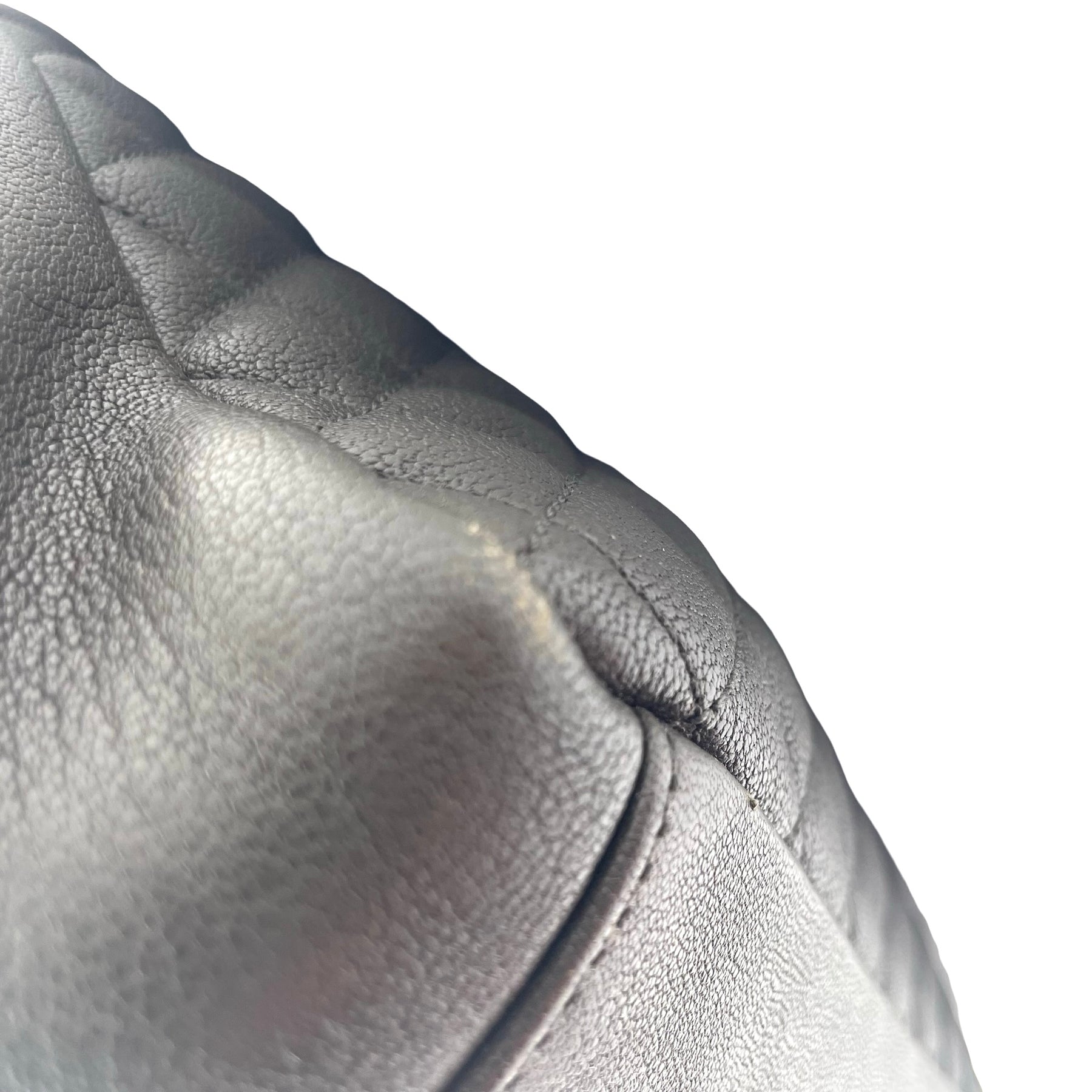 Bolsa Saint Laurent College, grande en piel color gris oscuro, con correa de eslabones plateada, placa con iniciales YSL en plateado. Con desgaste en esquinas, en buen estado.
