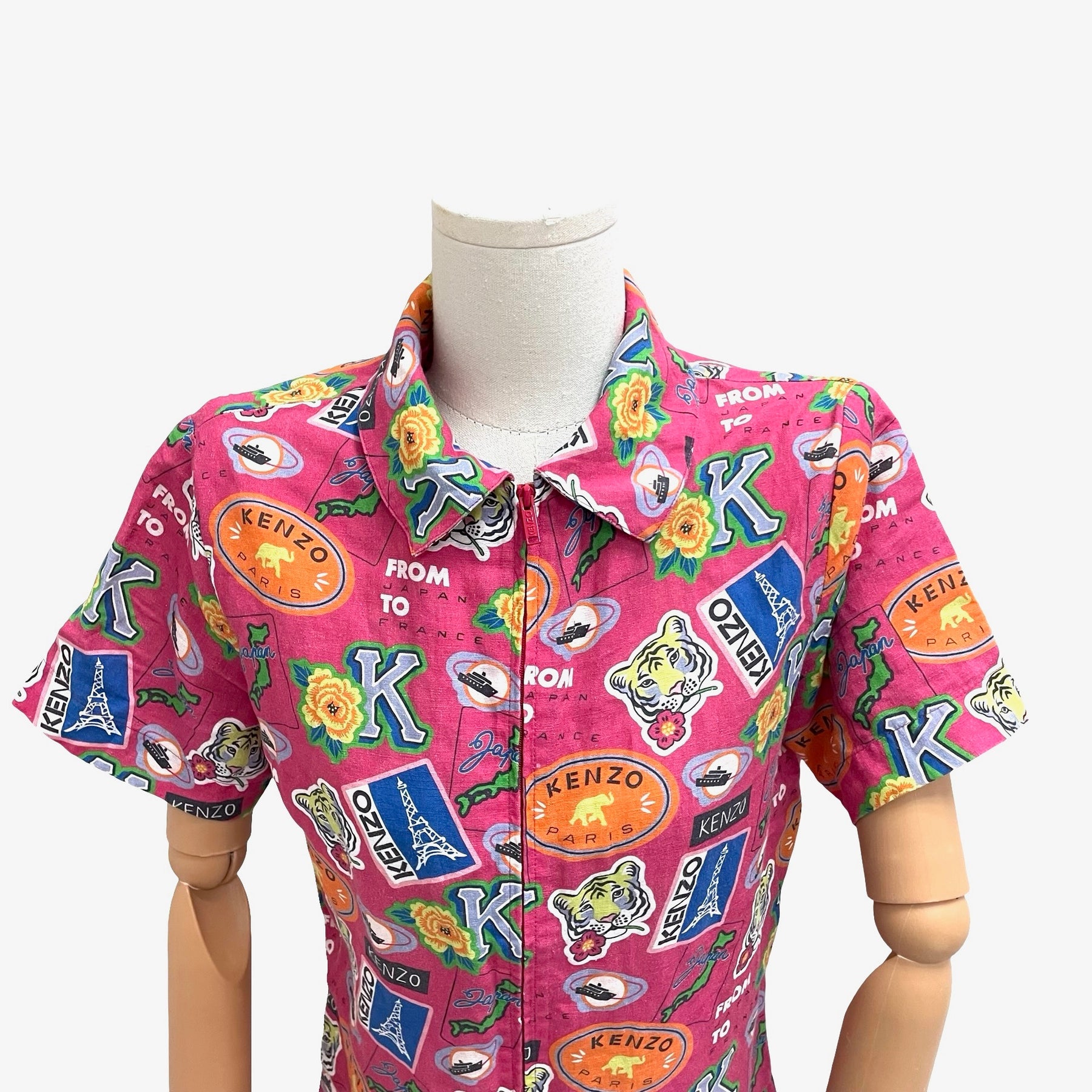 Jumpsuit Kenzo, de niña en manga corta de algodón en color rosa con print multicolor y cierre al frente. Con uso, en buen estado.