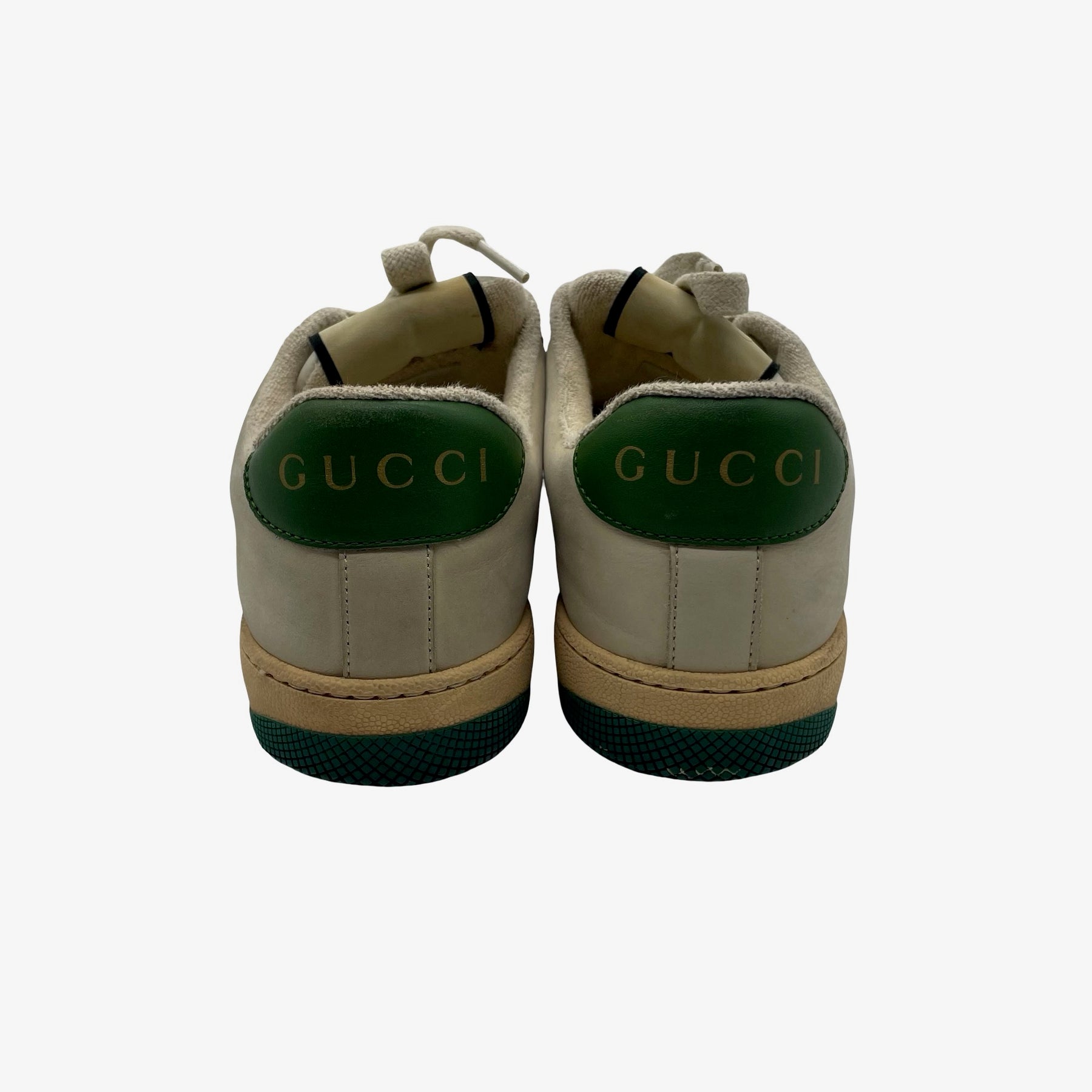 Tenis Gucci Screener, de piel y ante con franjas laterales rojo y verde. Con uso, en buen estado.