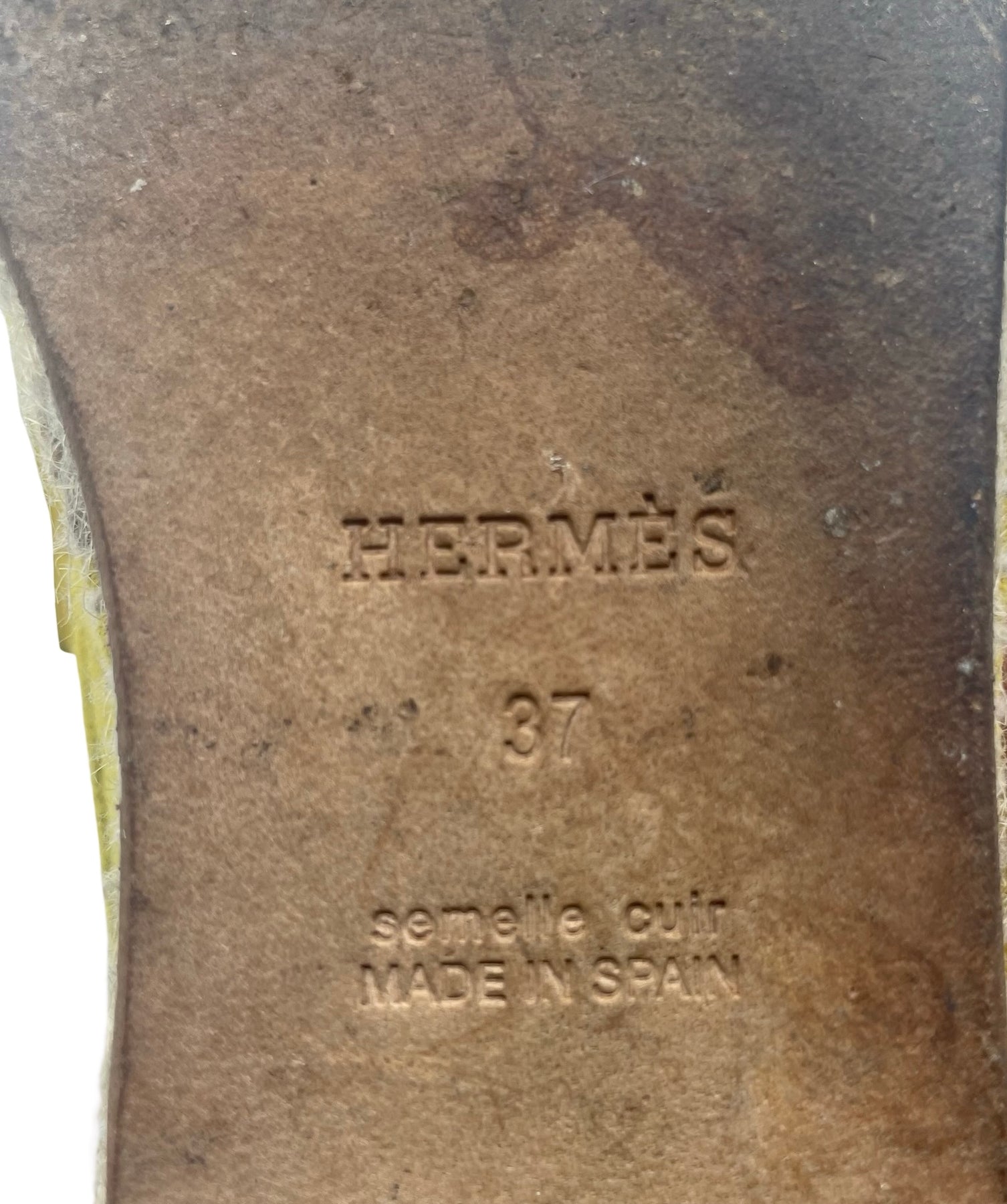 Alpargatas Hermès, de ante color amarillo, con suela de yute. Con uso en buen estado.
